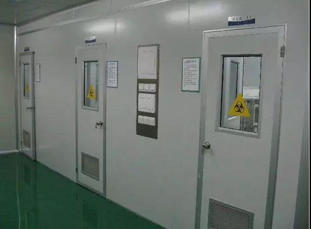 在三個實(shí)驗(yàn)區(qū)和三個緩沖區(qū)頂部以及傳送窗內(nèi)部安裝有紫外燈,供消毒用。