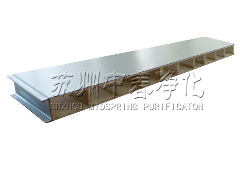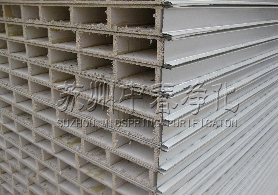 以二層防火玻鎂板、中間加防火玻鎂內(nèi)隔條為芯材,經(jīng)彩鋼夾芯板多功能連續(xù)生產(chǎn)線復合成型,中空玻鎂彩鋼夾芯板其特點板材為防火不燃材料組成,有效提高了彩鋼夾芯板的防火性能,又能滿足在有防潮濕環(huán)境條件下使用。